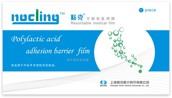 • 粘克?可吸收醫用膜,是由聚乳酸制成的高分子醫用功能材料,能在預期的時間內 降解為CO2和H2O。